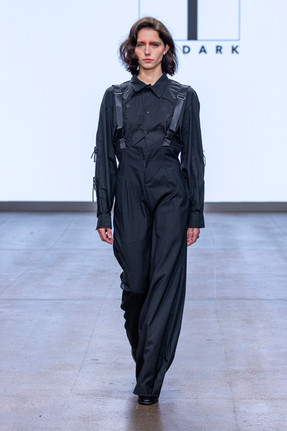 As the models glided out one by one, we were instantly immersed in the decadent spirit of the 1980s. The impeccably sculpted tailoring that defines INFDark felt arresting, innovative, and entirely magnetic. At the heart of the show was a sense of adaptability, with pieces designed to be transformed and worn in multiple ways. Several looks featured carefully selected fabrics inspired by the Memphis movement, a radical 1980s design collective known for rejecting minimalism in favour of bright, clashing colours, bold geometric shapes and unexpected materials, evoking the decade’s audacious spirit, playful patterns and a mix of kitsch and elegance brought a rebellious, whimsical energy, reimagining the Memphis spirit for today's wardrobe.